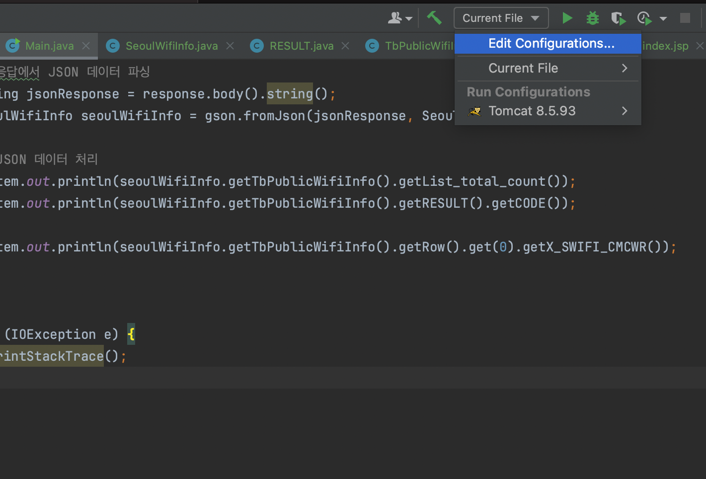 1. 인텔리제이에서 Edit Configuration 클릭